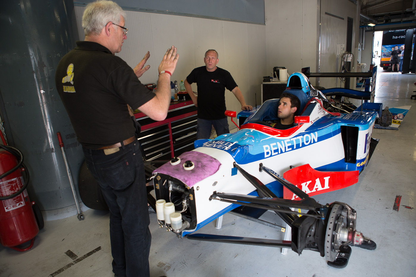 Bei den freien Training feierte unser Gastfahrer Lance David Arnold und unser neustes Team Mitglied Wolfgang Jaksch also ihr Debüt im Benetton B197. Im gesamten freien Training machte Lance noch die beste Figur mit Rundenzeiten von 1:39.358.