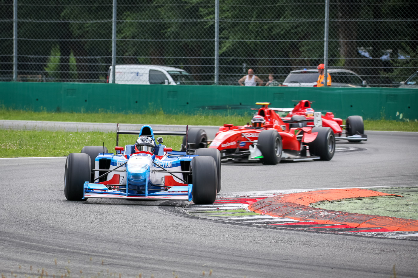 Das erste Rennen, sofern man es so nennen kann, begann mit einem Crash für Veronika in der ersten Schikane, der berüchtigten “Prima Variante”, gefolgt von einer langen Safety Car Phase und wurde schließlich nach einem plötzlich einsetzendem Unwetter mit starkem Platzregen abgebrochen. Wolfgang Jordan und Wolfgang Jaksch konnten von dem Chaos auf der Strecke profitieren und beendeten das Rennen auf Platz 6 und 10.