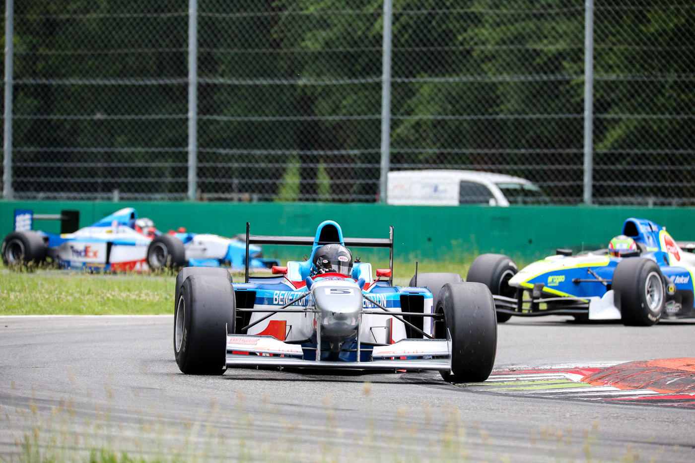 In der ersten Runde kollidierte Wolfgang Jordan jedoch bei einem Überholversuch mit Peter Milavec und setzte seinen Benetton bei Tempo 280 km/h in die Leitplanke. Bernd, dessen Sicht behindert war, konnte nicht rechtzeitig Bremsen und landete so in Klaas Zwart’s Heck und so war auch für diese beiden das Rennen beendet. Bei diesem Horrocrash blieben zum Glück alle Fahrer unversehrt.