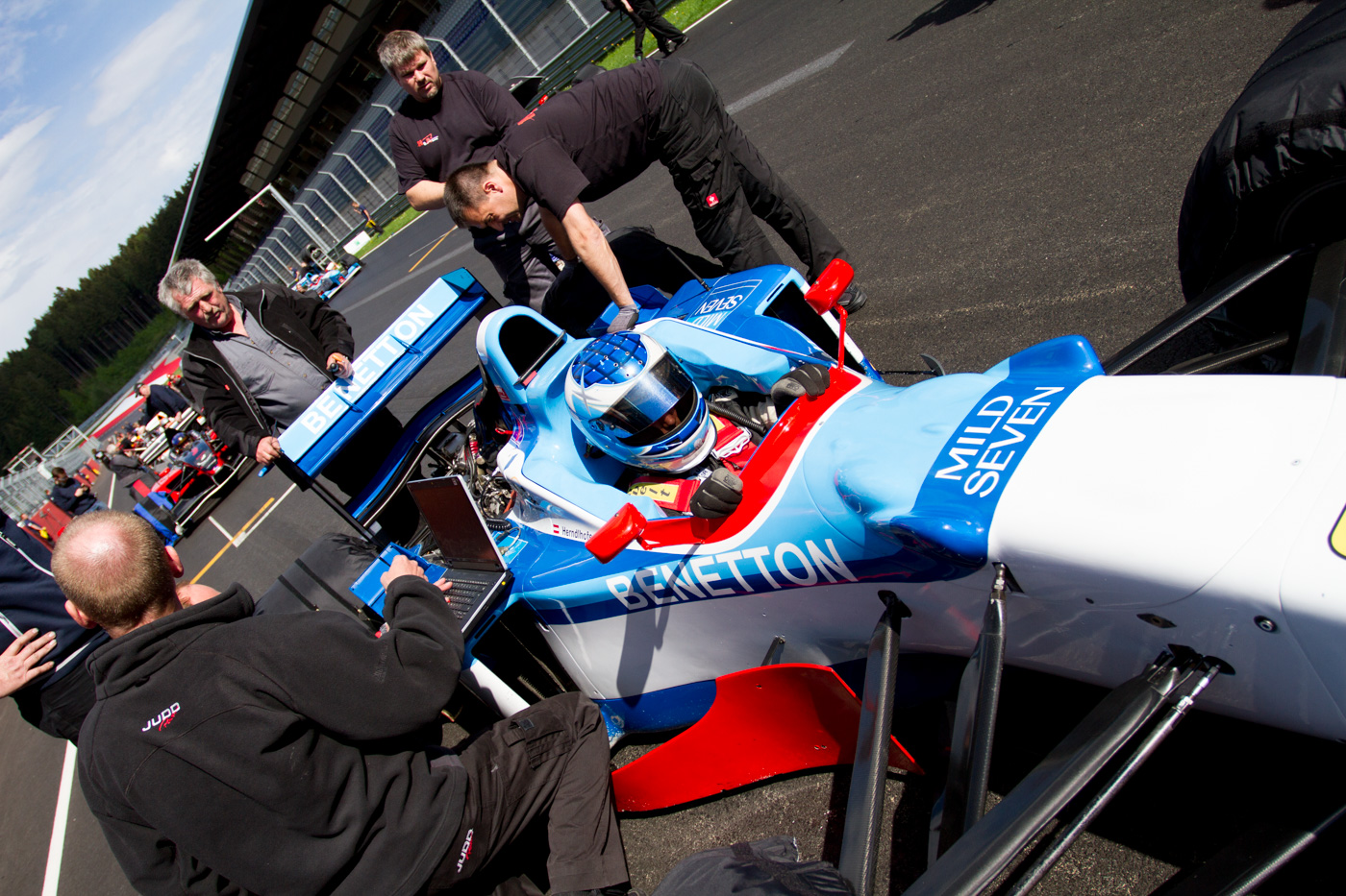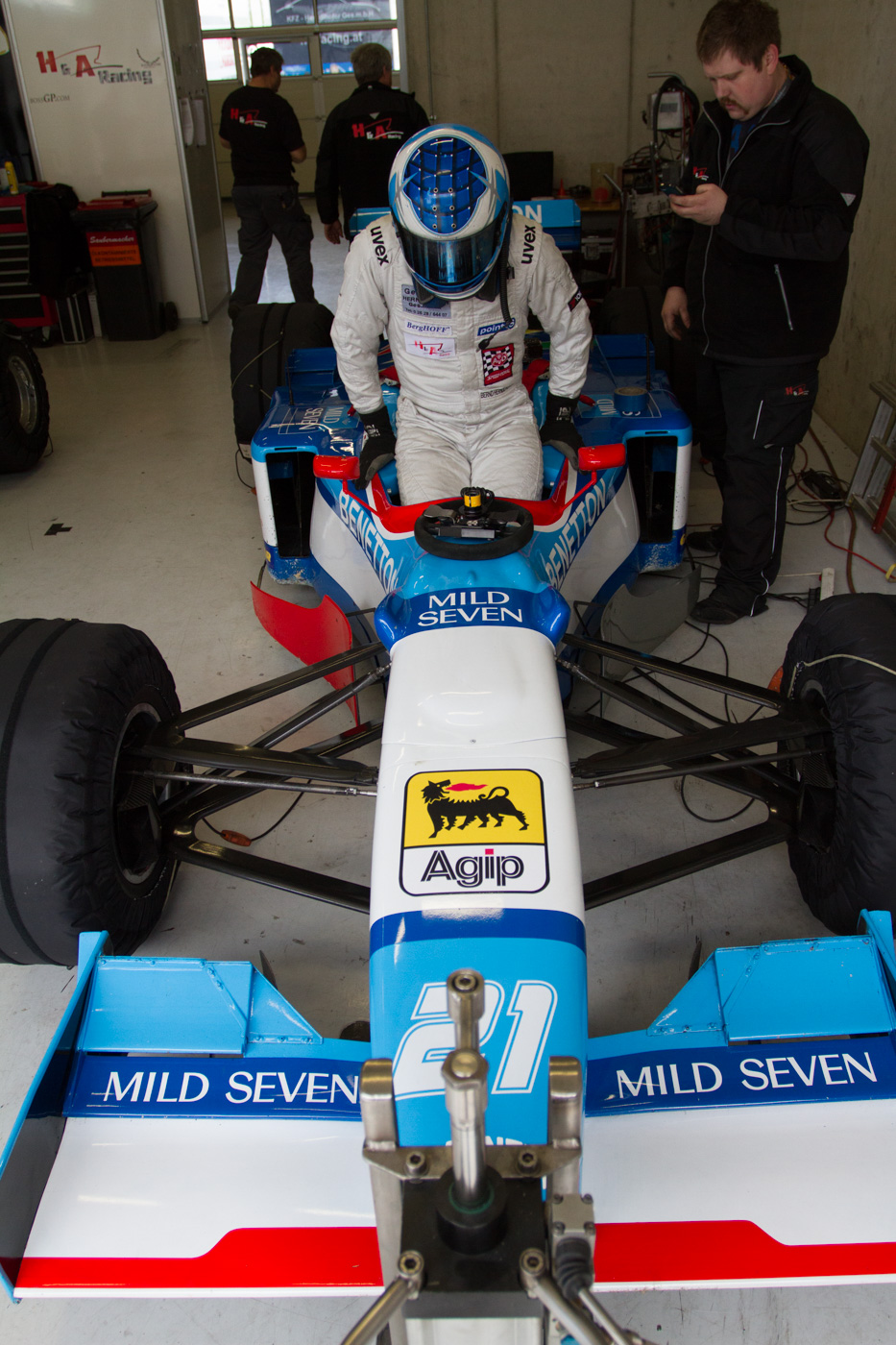 Das erste Rennen nahm dann aber unerwartet Wendungen. Der erste Rückschlag kam bereits in der Einführungsrunde, in der ein technisches Defekt Bernd zwang vorzeitig seinen Benetton abzustellen.